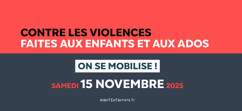 Le Collectif Enfantiste appelle à manifester contre les violences faites aux enfants et aux adolescents, ce samedi 15 novembre 2025, dans une trentaine de villes de France. Droit au Corps participera à la manifestation de Paris et appelle tous ses sympathisants à se mobiliser dans les villes concernées.